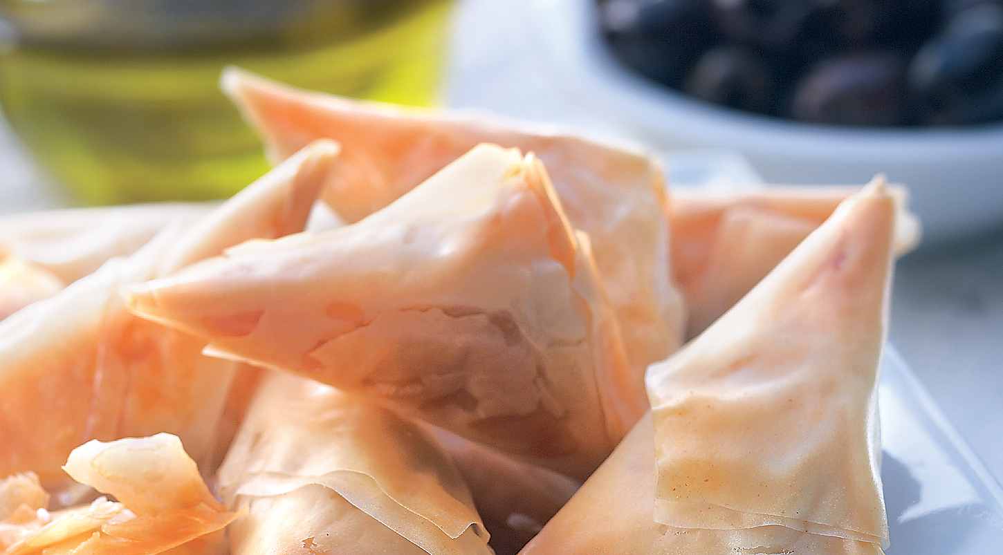 From my book, The Enlightened Eater’s Whole Foods Guide (Viking Canada), here’s a savoury treat that’s traditionally deep-fried and laden with fat. Unbaked pastries freeze well and can be baked from the frozen state. Simply freeze them on a plastic wrap-lined baking sheet until frozen solid. Once they’re frozen, remove them from the freezer and store in a container, using wax or parchment paper between the triangles. Return to the freezer. Bake at a lower temperature- 350°F/180°C for 25 to 30 minutes, or until golden and crispy.