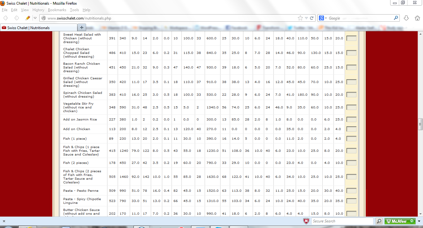 A client of mine recently had dinner at Swiss Chalet and instead of his usual breast of chicken with the skin removed and salad without the dressing, opted for a Vegetable Stir Fry with Jasmine Rice and Chicken. He knew it would be higher in calories but what he didn’t expect were the whopping numbers: 1170 calories, 40 grams of fat and 1910 milligrams of sodium.