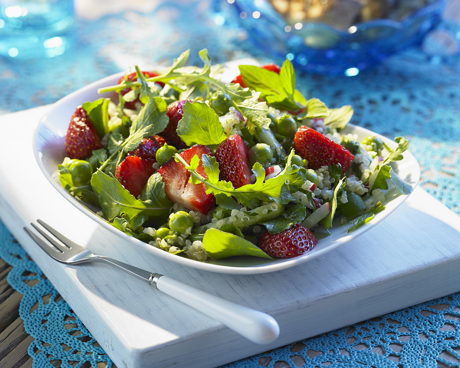 Tip: To cook quinoa: In wire strainer, thoroughly rinse 1 cup (250 mL) quinoa. In medium saucepan, combine rinsed quinoa and 1-3/4 cups (425 mL) cold water; cover and bring to boil over high heat. Reduce heat to medium-low; simmer, covered, for 10 to12 minutes or until water is absorbed. Remove from heat; let stand 5 minutes. Fluff with fork. Cool before using in salad.