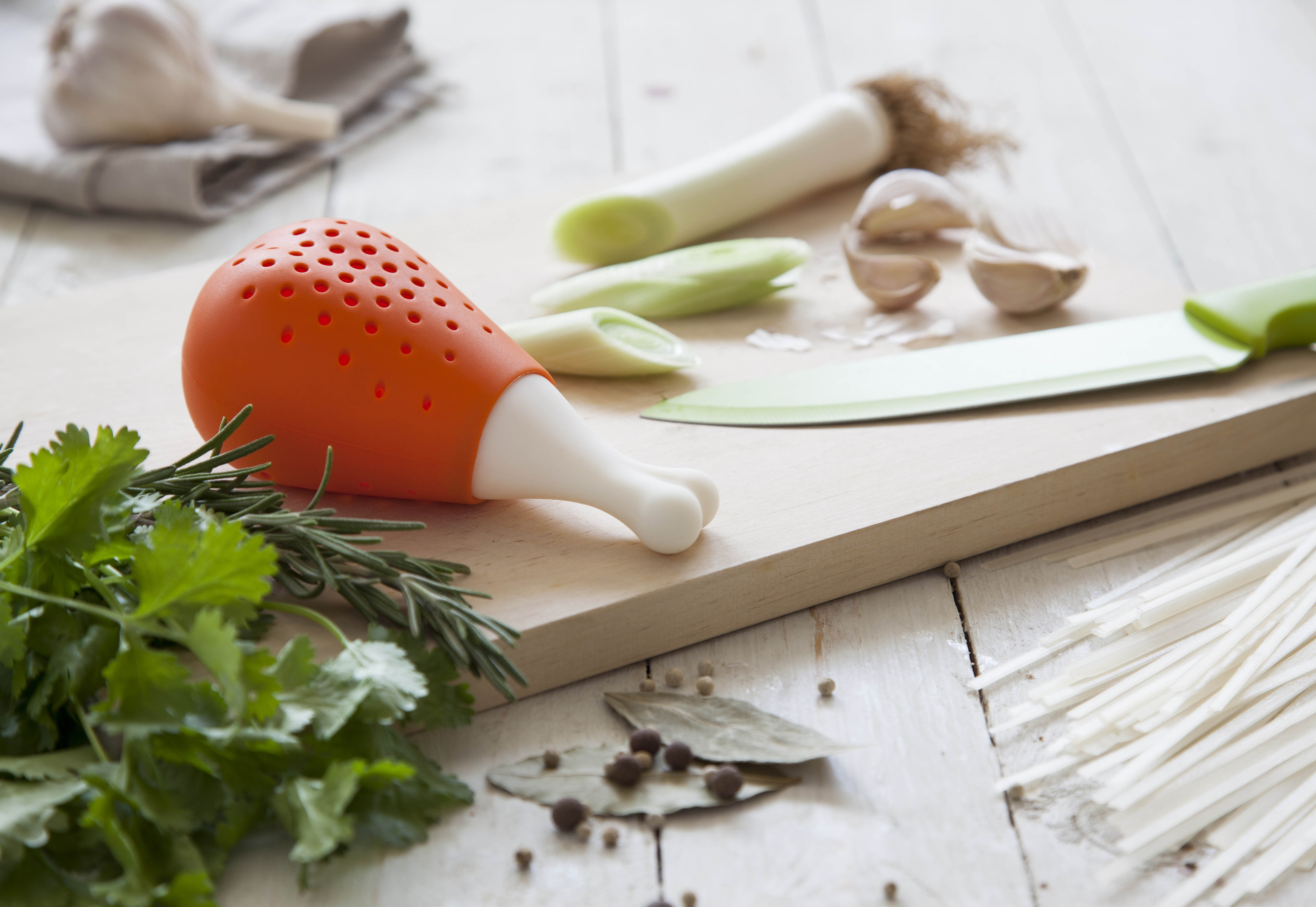 The herb infuser is from an Israeli design team, Ototo. They’ve come up with some very ingenious looking products – from a Flower Power steam venter to put on a pot to a Tea submarine for infusing tea or Bunny Pops for homemade frozen treats. Check out their other products – even just for a look as they will bring a smile to your face!