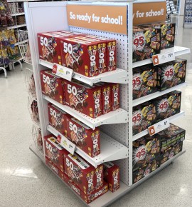 At first glance, you might think that these store shelves are already stocked for Halloween but you would be wrong. This is “So ready for school” Canadian style.