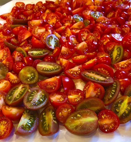 Roasted tomatoes are delicious additions to salads and grains dishes or pasta. You can also freeze them in small portions to use during the winter.