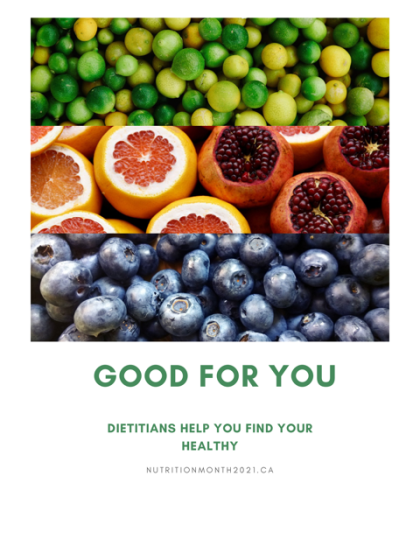 It’s March again. It’s always been March. It will always be March. Hasn’t it felt like that thanks to the pandemic? But it really is March and it is Dietitians of Canada’s Nutrition Month. The theme this year is Good for You – Dietitians help You find Your Healthy.