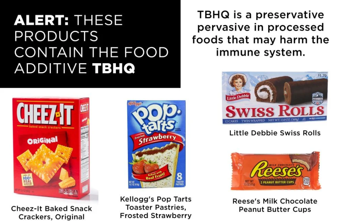 Check out this news story “Preservative in Pop-Tarts, Cheez-Its, hundreds of popular foods may harm immune system”. It talks about harm from a preservative called tert-butylhydroquinone, or TBHQ.